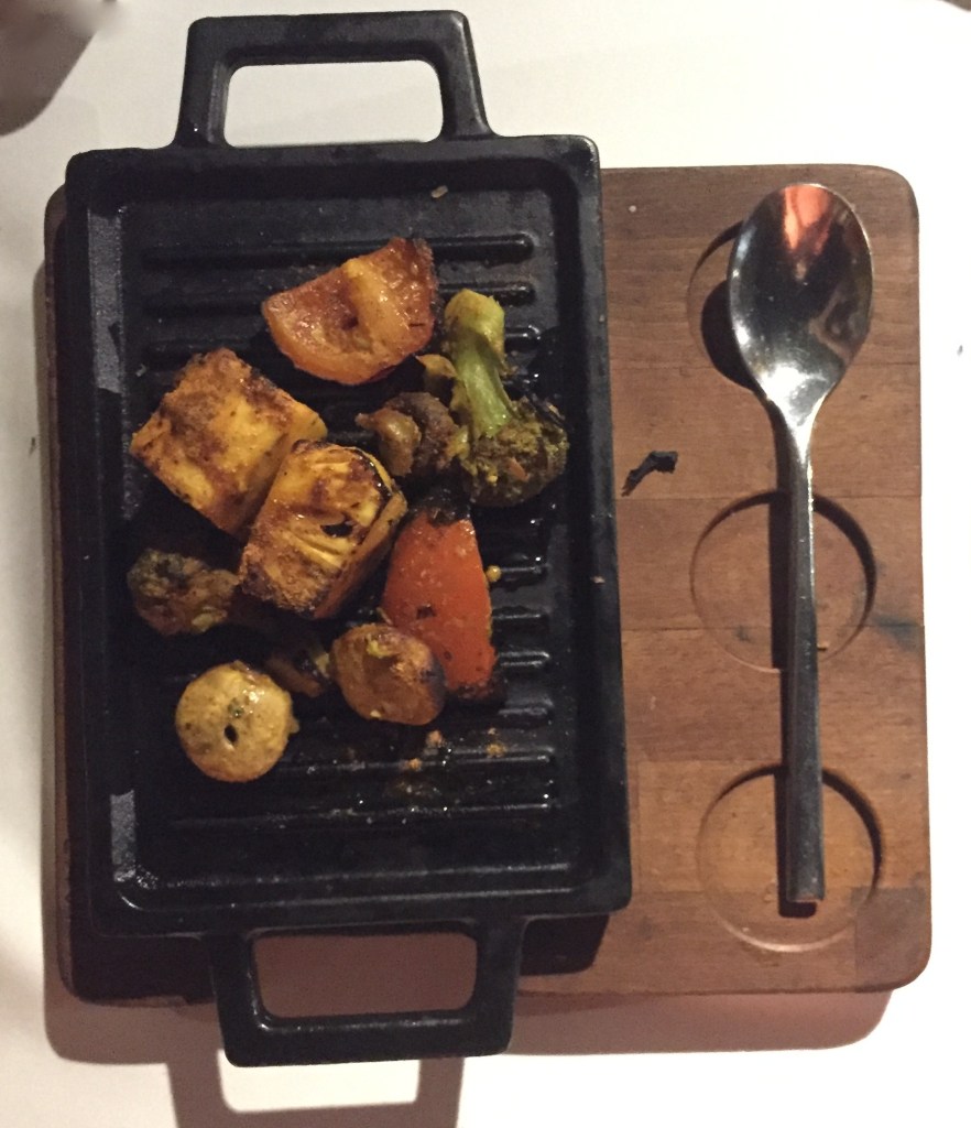 - Tandoori Ratan- This tandoori platter does not serve you cottage cheese instead it serves you grilled pineapple, red & yellow bell pepper, mushroom, broccoli; marinated with yogurt. Grilled pineapple does look appealing and while grilling,the top glaze of it caramelizes, thus making it taste more appealing. Pineapples doesn’t taste gooey like other grilled fruits, indeed it soothes your soul. The platter is served with different sauces.